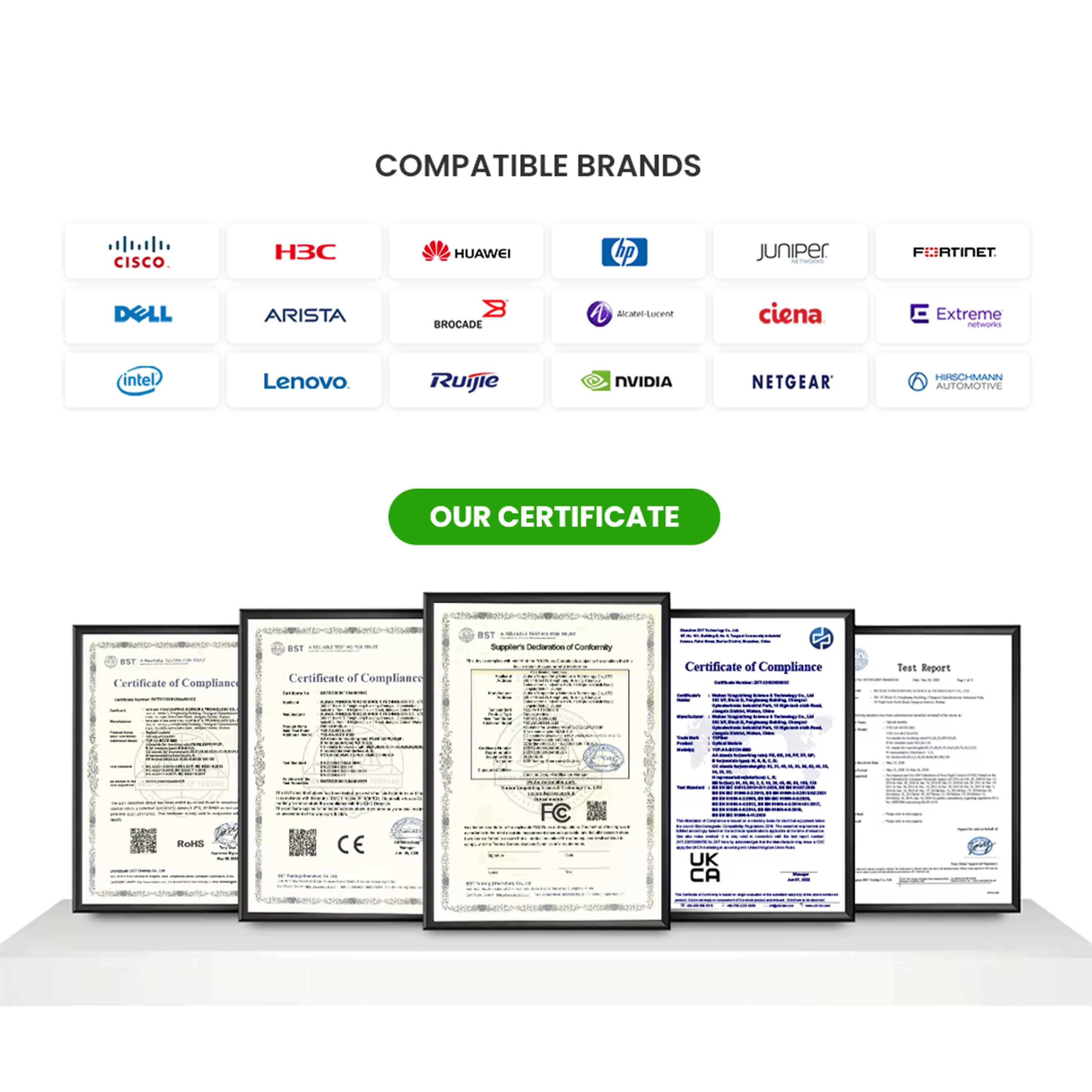 A: Besides the price advantage, we have compared to branded transceivers, YXFiber compatible transceivers also maintain the same performance and reliability. To satisfy our customers' needs of high performance, all of our transceivers are tested multiple times in mainstream original brand switches in our test center before shipped out.