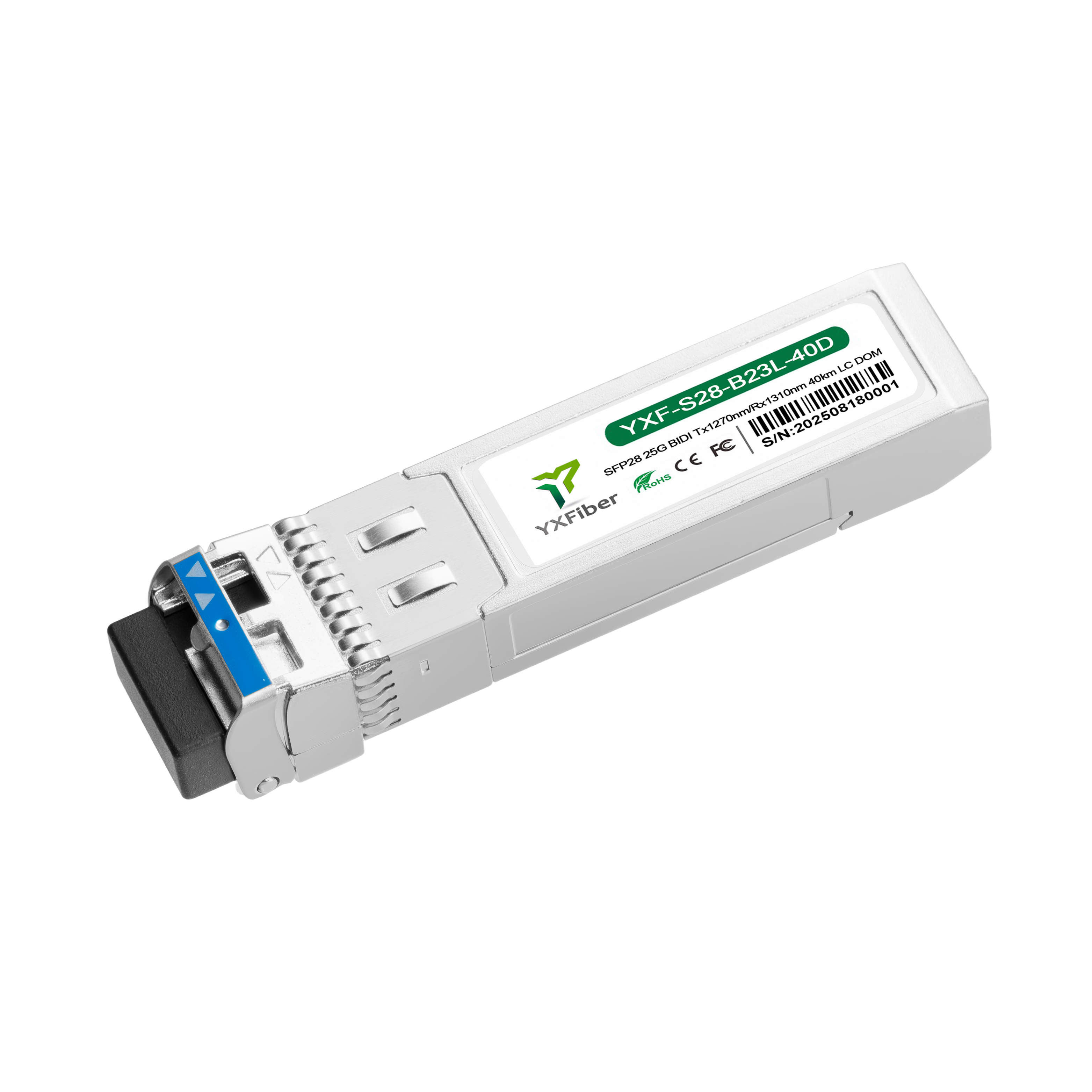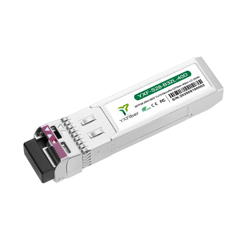 Compatible 25GBASE-BX40-D SFP28 Optical Transceiver Module for Data Center and Telecom (SMF, 1310nm-TX/1270nm-RX, 40km, LC, DOM)