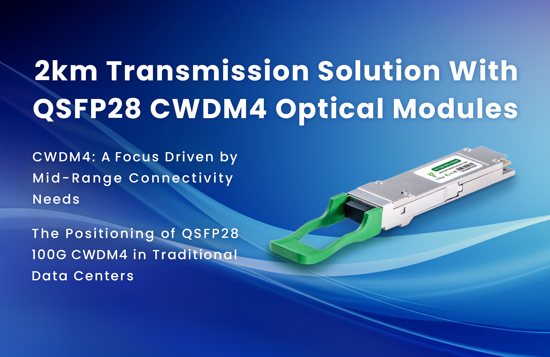 Against this backdrop, the CWDM4 MSA organization developed the 100G QSFP28 CWDM4 standard in 2014, providing a precise solution for mid-to-long-distance transmission. The 100G QSFP28 CWDM4, based on Coarse Wavelength Division Multiplexing (CWDM) technology, can achieve a transmission distance of up to 2km using single-mode fiber at a relatively low cost, perfectly filling a market gap and becoming the preferred solution for cross-floor and cross-building interconnection in data centers.