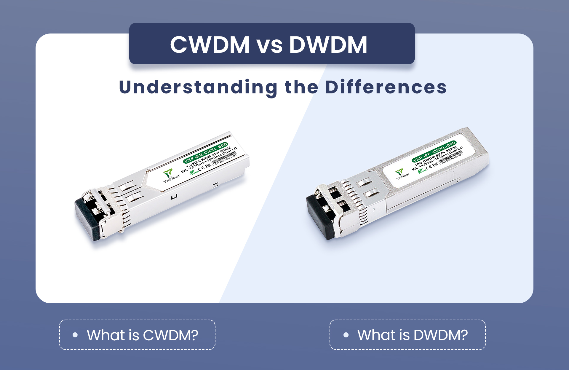 WDM is a technology that increases the capacity of optical fiber communication by transmitting multiple optical signals of different wavelengths in the same optical fiber. Based on wavelength spacing and application scenarios, WDM technology can be divided into two main categories: CWDM and DWDM.